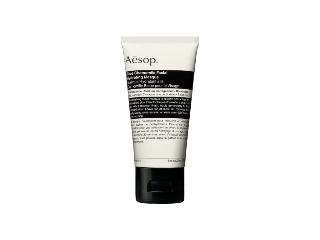 Aesop Blue Chamomile Facial Hydrating Masque – intenzívne hydratačná maska s modrým harmančekom, levanduľou a panthenolom pre okamžité osvieženie a upokojenie pleti.