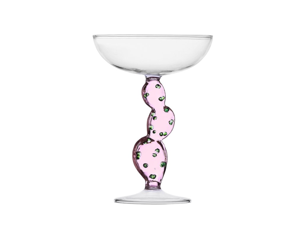 Sklenený pohár na šampanské Ichendorf v dizajne ružového kaktusu s objemom 300 ml. Kolekcia Desert Plants od Alessandri Baldereschi.