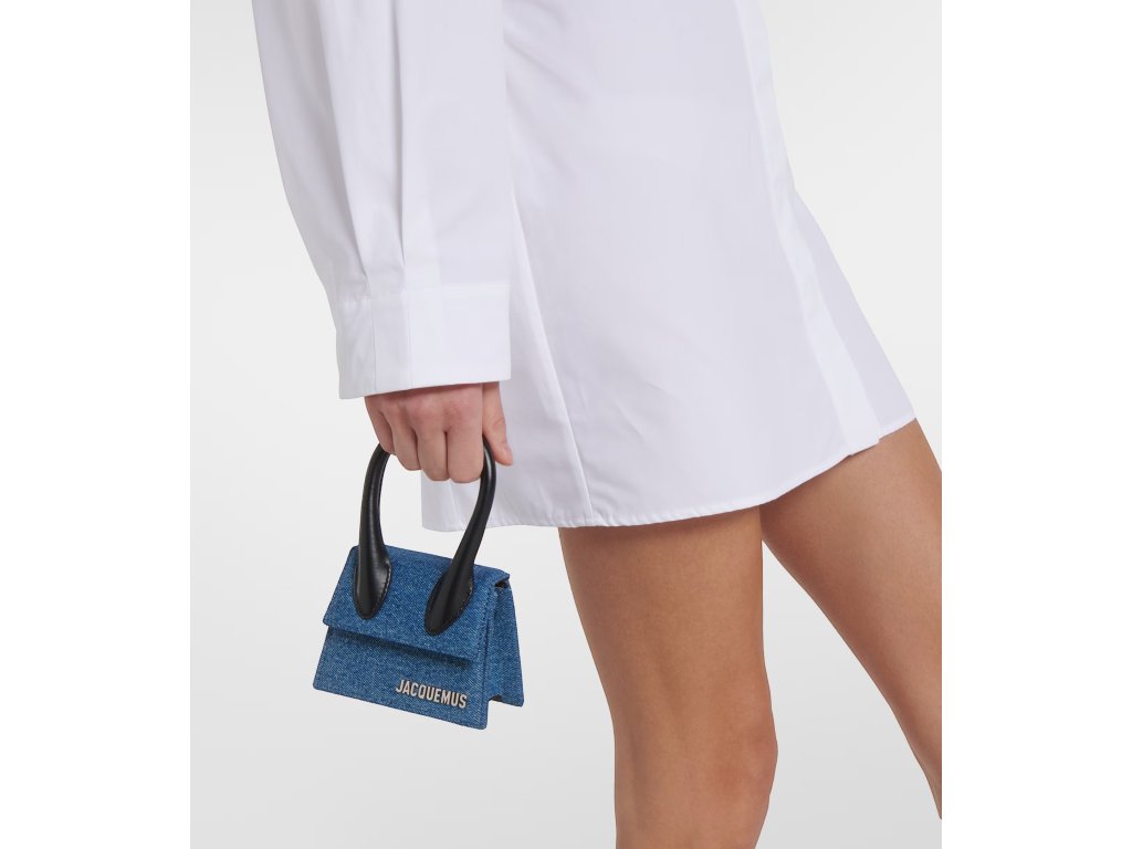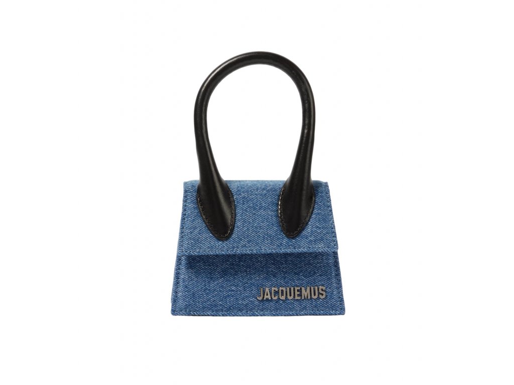 Unisex mini kabelka Jacquemus Le Chiquito v textilnom denim prevedení s koženou rukoväťou