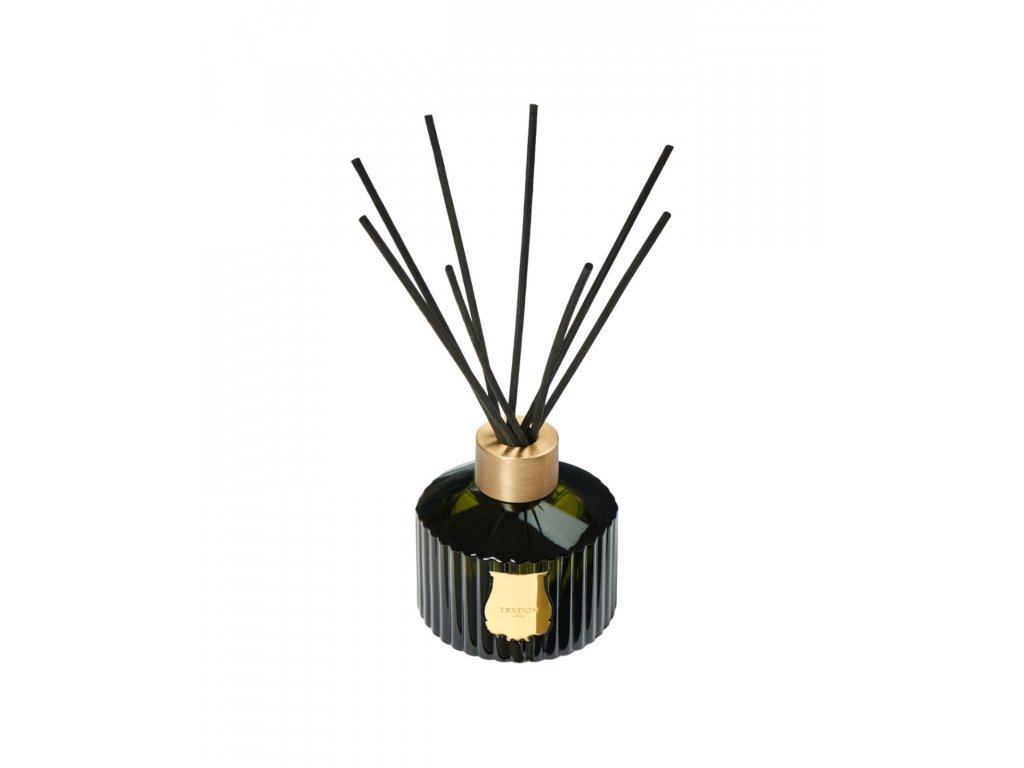 Podobne ako sviečky, aj difuzéry sú vyrábané z prvotriedneho skla v Toskánsku a sú zdobené zlatým emblémom, ktorý je inšpirovaný reliéfom nájdeným v starej kráľovskej voskárni neďaleko Paríža, ktorá kedysi patrila rodine Trudon a v súčasnosti je sídlom cirkevnho rádu Saint-Joseph de Cluny. Každý flakón dopĺňa 8 prírodných ratanových tyčiniek. Bytový difuzér Trudon s 350 ml náplňou sa postupne odparuje vo po dobu 3-4 mesiacov a dotvára tak nezameniteľnú atmosféru vášho domova.