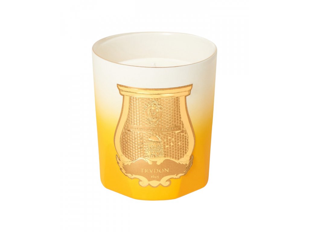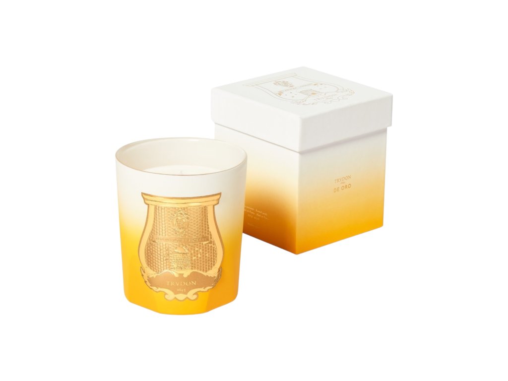 Trudon De Oro. V tejto sofistikovanej vonnej sviečke sa sviežosť citrusov dokonale mieša s pôvabom bielych kvetov. De Oro vyvoláva obraz balkóna v andalúzskom paláci, s výhľadom na bujné, voňavé záhrady so zapadajúcim slnkom nad vzdialenými stredomorskými ostrovmi.